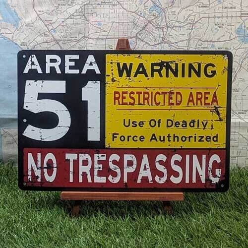 アメリカ政府がついに存在を認めた「エリア51」のブリキ看板です。